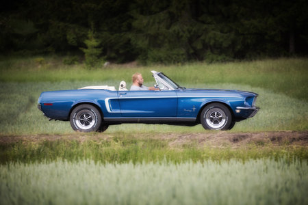 トルーサ スウェーデン 17 年 6 月 22 日 フォード マスタング 青 コンバーチブル 1968 年 の写真素材 画像素材 Image