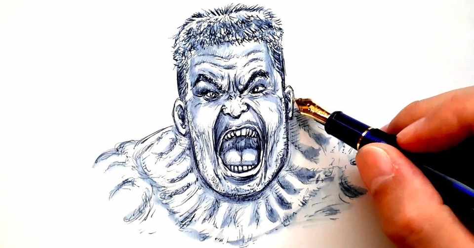 イラスト 映画 アベンジャーズ の ハルク を万年筆と水筆ペンで描いてみた Drawing The Hulk With Fountain Pen And Water Brush Pen 鼻毛山 真一 Note